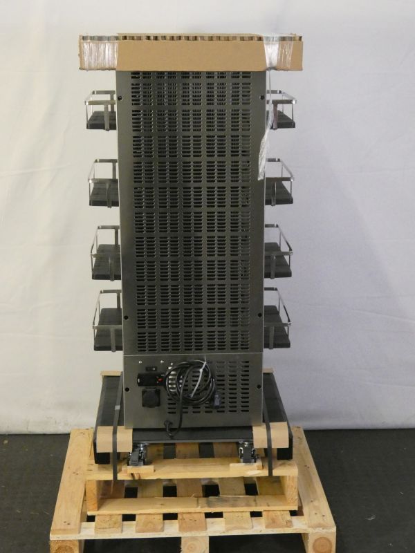 - 230 V Steckdose unterhalb auf der Geräterückseite, Außenseite li/re jeweils mit 4 Halterungen mit PVC beschichteter Holzablage für Gläser oder Tassen