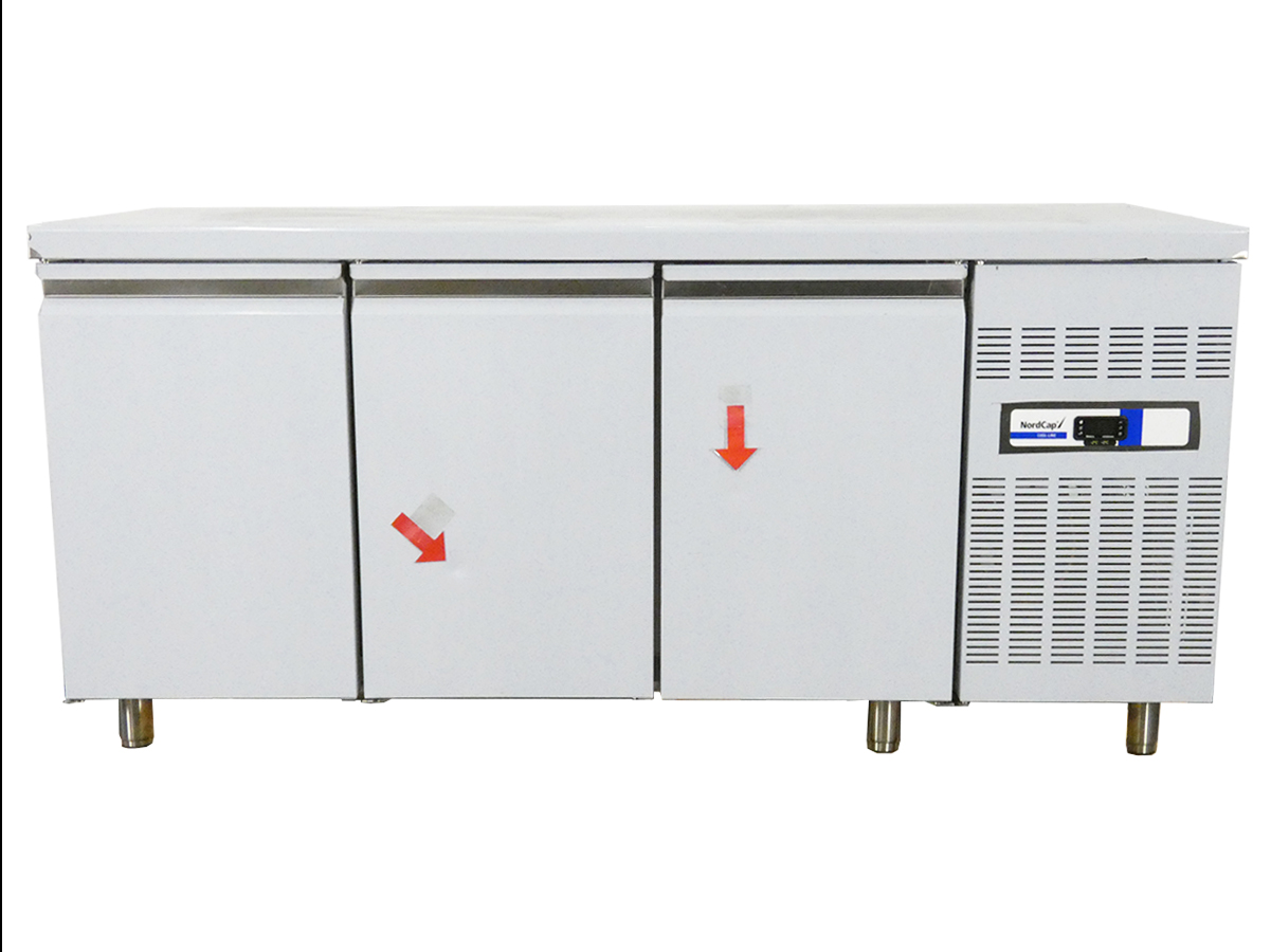 steckerfertiger Kühltisch, umschaltbar zwischen statischer- und Umluftkühlung, Korpushöhe in mm: 690, außen Edelstahl 1.4509, innen Edelstahl 1.4509, Innenraum zur Aufnahme von GN 1/1 geeignet, 3 Türen, CNS-Griffleisten, selbstschließend, Offenstellung der Türen bei 100°, leicht wechselbare Magnetdichtungen, Polyurethan-Hartschaumisolierung, bis zu 60 mm stark, elektronische Steuerung, Digitalanzeige, automatische Abtauung und Tauwasserverdunstung, Innenraum mit abgerundeten Ecken, Verdampferanordnung zwischen den Türabteilen, serienmäßig je Türabteil mit leicht entnehmbarer Edelstahl Stellage und 1 Tragrost GN 1/1, rilsaniert, Temp.-Bereich bei 43 °C UT und 60 % RF -2 bis +8 °C, rel. Luftfeuchte 80 bis 85 %, Kältemittel R-290, Füllmenge 90 g, Anschlusswert 195 W / 230 V, Energieverbrauch 2,14 kWh / 24h