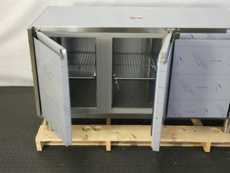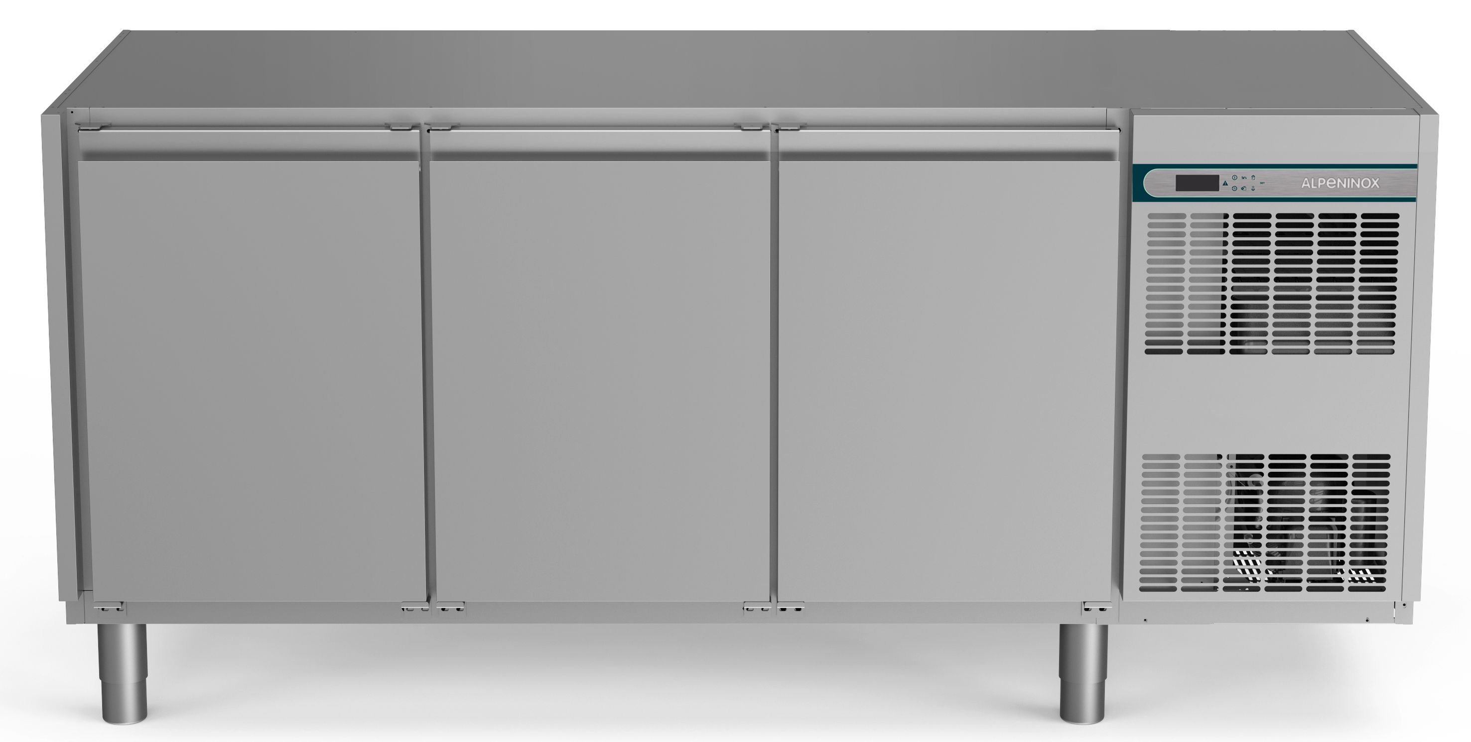 für GN 1/1, sockelfähig, bedingt einbaufähig (durch Frontbe- und -entlüftung), unterbaufähig, Grundausstattung ohne Arbeitsplatte, 3 x Volltür, CNS, selbstschließend, nicht überstehend, Offenstellung bei 95°, CNS-Griffleiste, abgerundete Ecken, Luftleitbleche (innen, unter der Decke), elektronische Steuerung, Digitalanzeige, intelligentes "Airflow"-System, HACCP-Kontrollfunktion, akustische und optische Alarmfunktion, 3-stufige Feuchtigkeitssteuerung, automatische Abtauung (bedarfsgerecht), automatische Tauwasserverdunstung (Heißgas), Maschine zur Wartung / Reinigung komplett herausziehbar, freiliegender Verdampfer